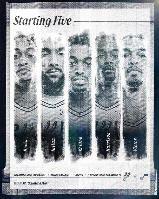 马刺:凯尔登、巴恩斯、文班亚马、尚帕尼、瓦塞尔