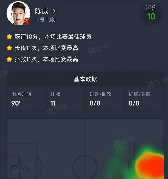 在昨晚海港与柔佛新山的比赛中,对手近50次的射门都没能攻破陈威的十指关,而陈威赛后也获得了10分的满分,他在本场比赛贡献了全场最高的11次扑救,堪称海港从客场带回1分的最大功臣。至此,他本赛季为海港出战了4场比赛,有3场都是全场最佳球员!