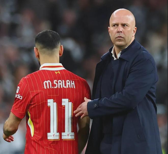 在利物浦战胜国米的欧冠比赛后,斯洛特被问到了萨拉赫有没有可能再归队的问题。